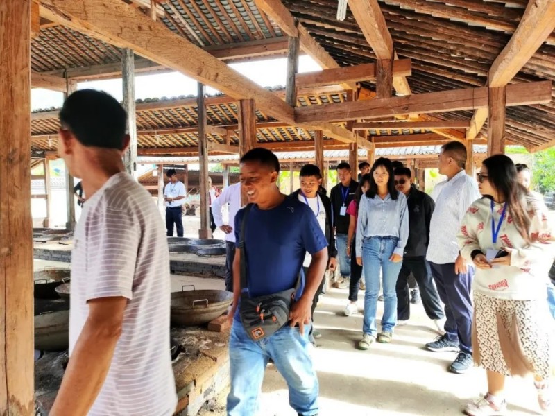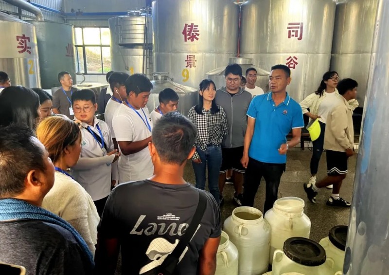 培训班一行首先深入到景谷县民乐镇傣司实业循环经济创业园区及云春茶社参观学习。在傣思实业循环经济创业园区,企业负责人带领大家参观了酿酒车间和产品陈列展示室,介绍酿酒工艺及循环经济链,大家就产品包装设计中融入本土特色文化元素进行了交流。